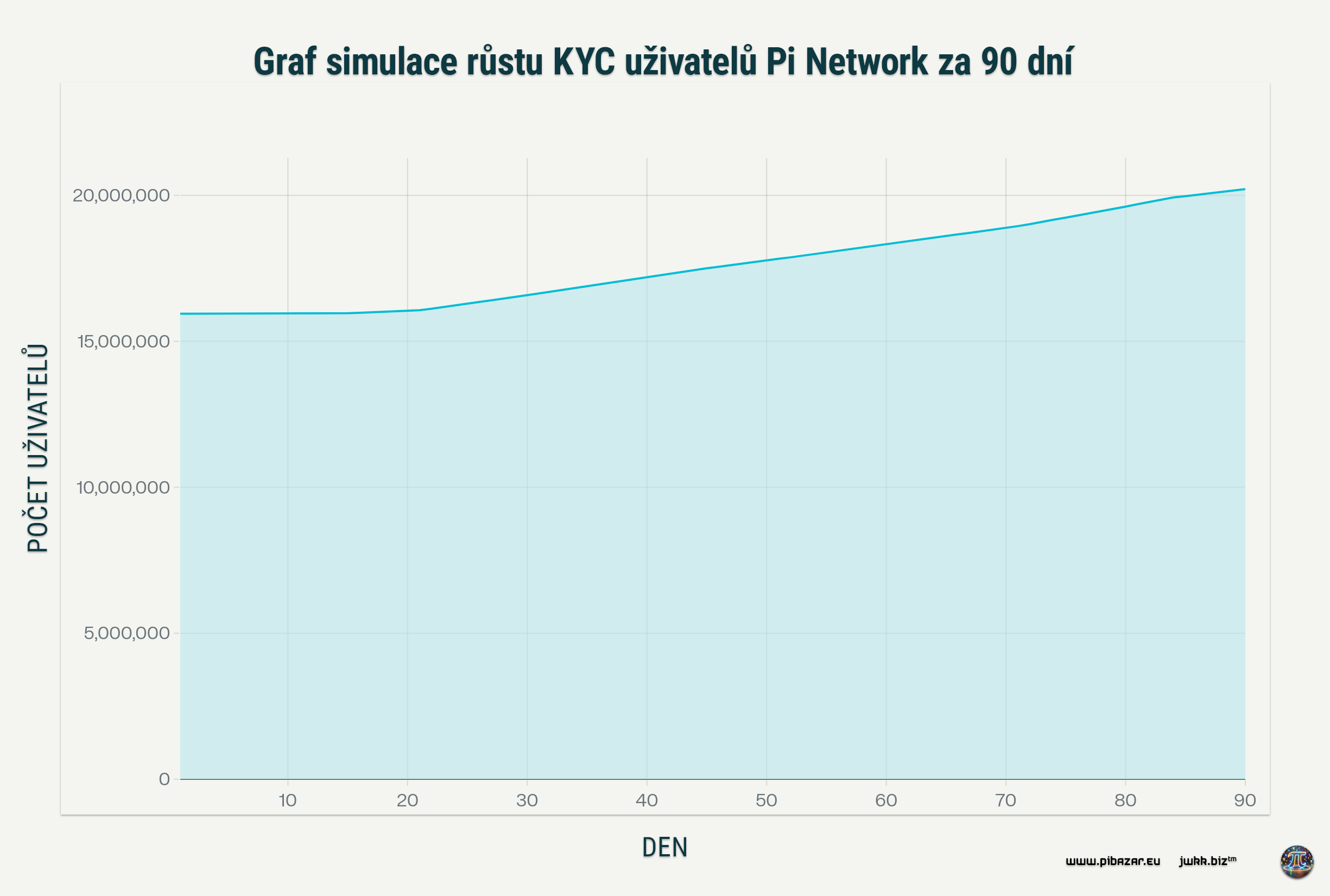 Graf simulace růstu KYC uživatelů Pi Network za 90 dní