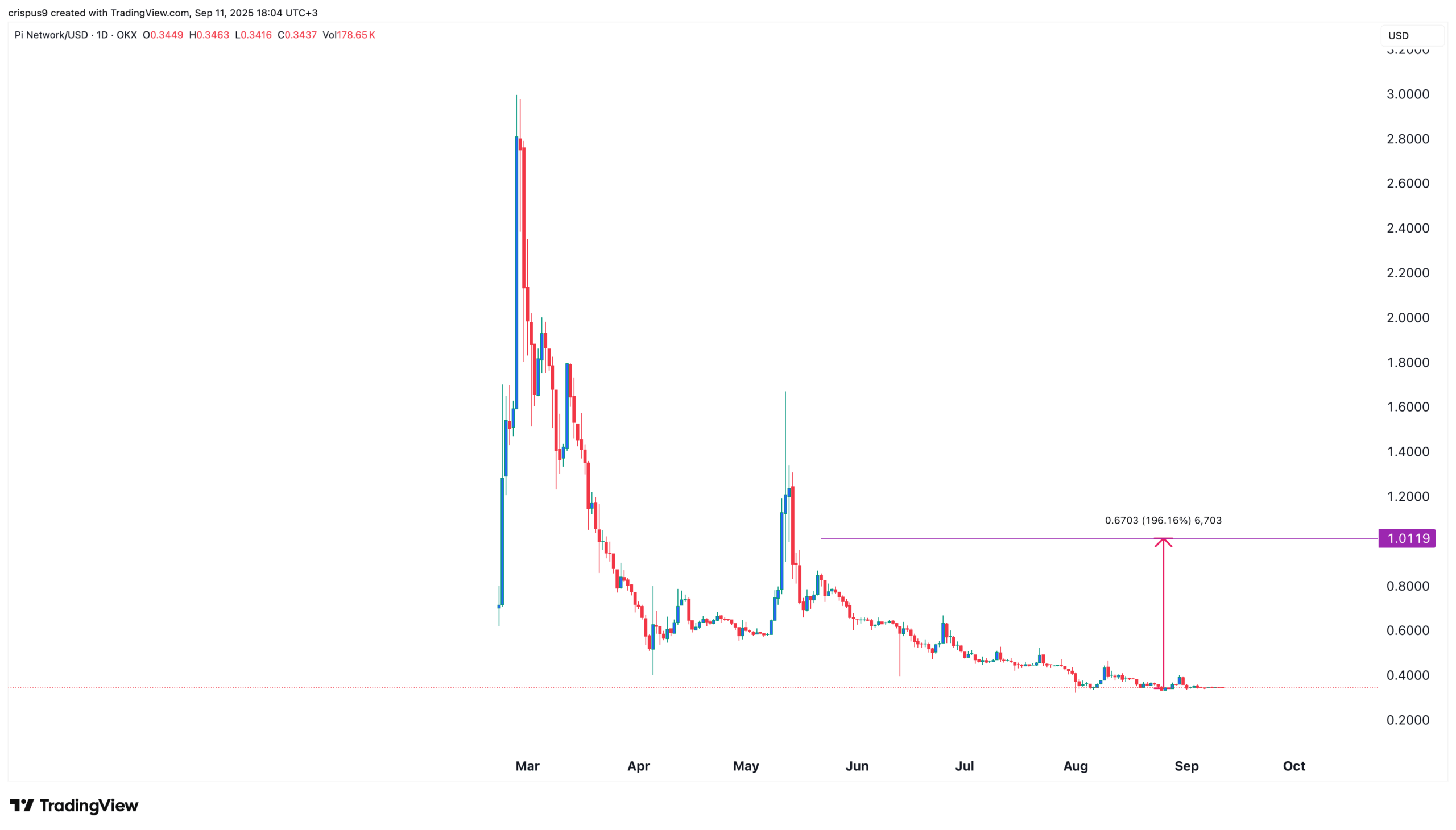 TradingView | Cena Pi Network 11.09.2025